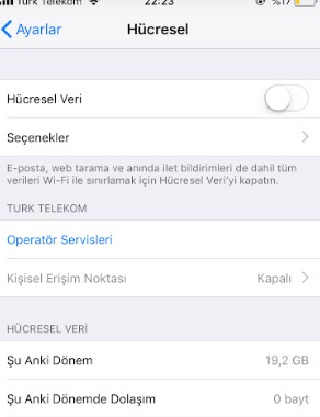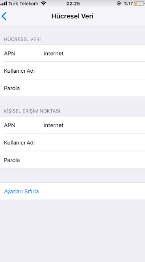 - Telefon içerisinde var olan ”Menü>Ayarlar>Hücresel>Seçenekler>Hücresel veri ağı> APN alanında yazan alan İnternet yazması gereklidir.