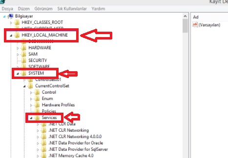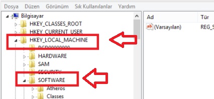 - HKEY_LOCAL_MACHINE Alanına tıklayıp alt sekmede açılan