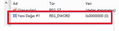 Yaptığımı işlemlerin temelinde yer alan bilgilendirme ise yeni bir değer oluşturmaktır. Yeni değeri oluşturduktan sonra bu alana yeni bir isim belirleyeceğiz.