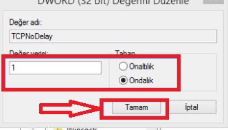 Lol delay sorunu ile ilgili adımlarımızın devamında bu alandan Ondalık değer bölüme geliyoruz.